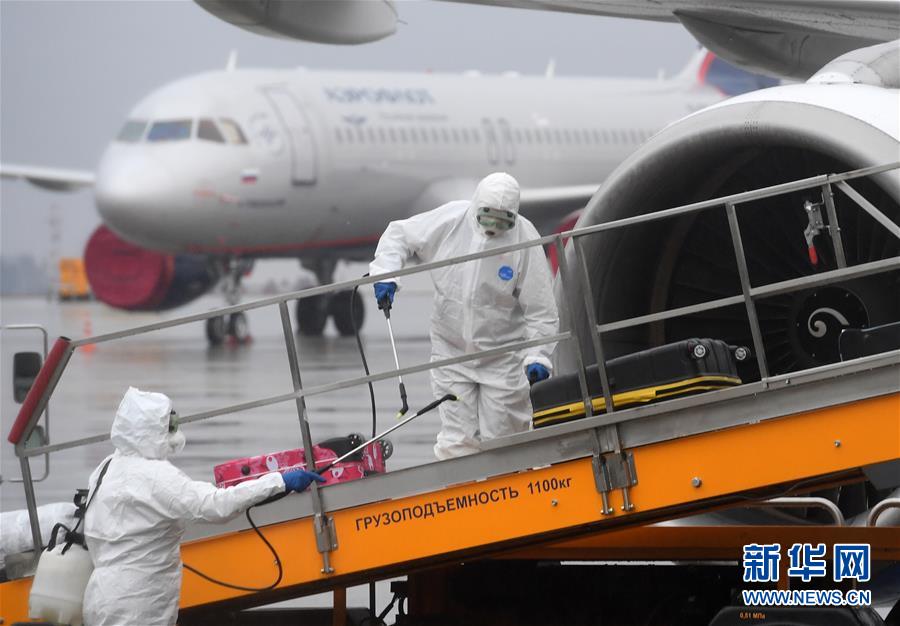 4月21日,在俄罗斯喀山,工作人员给从土耳其运抵的行李喷消毒液。 俄罗斯总统普京21日与土耳其总统埃尔多安通电话,就新冠疫情等问题进行讨论。据克里姆林宫网站发布的消息,普京与埃尔多安在电话中表示愿加强合作抗疫,密切协调配合,确保俄土公民返回家园。 新华社/卫星社