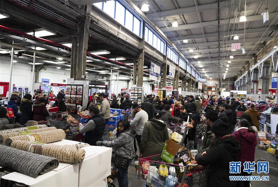 3月7日,人们在美国纽约的一家超市采购生活用品和食品。当天,纽约州已确诊76例新冠病例,纽约州州长安德鲁·科莫宣布全州进入紧急状态。 新华社记者王迎摄