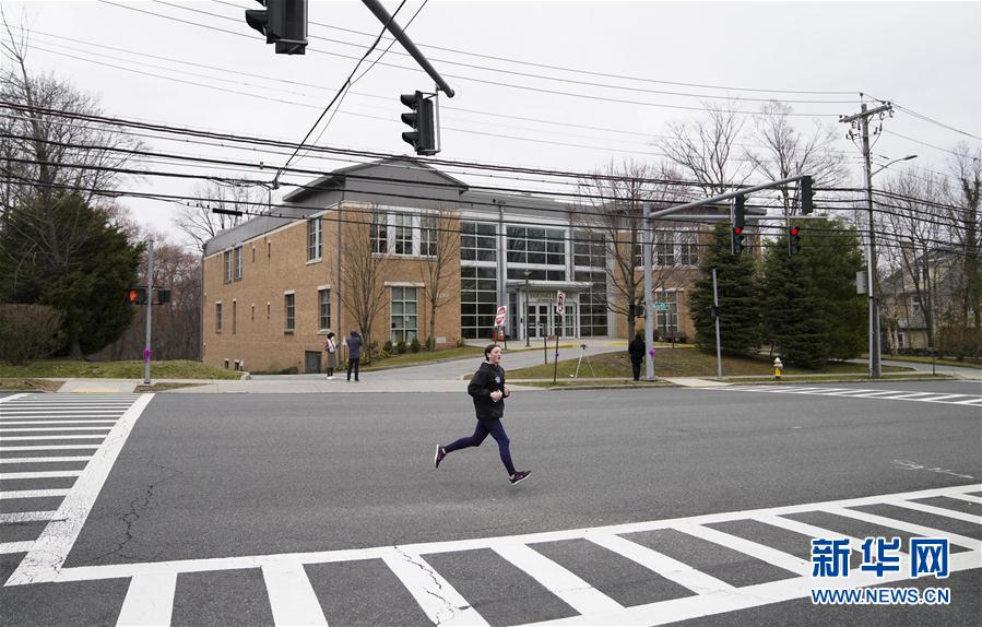 3月12日,在美国纽约州新罗谢尔“隔离区”,一名女子在街头跑步。当日,纽约州州长安德鲁·科莫宣布派遣国民警卫队到韦斯特切斯特县新罗谢尔设置一处半径为1.6公里的隔离区。 新华社记者王迎摄