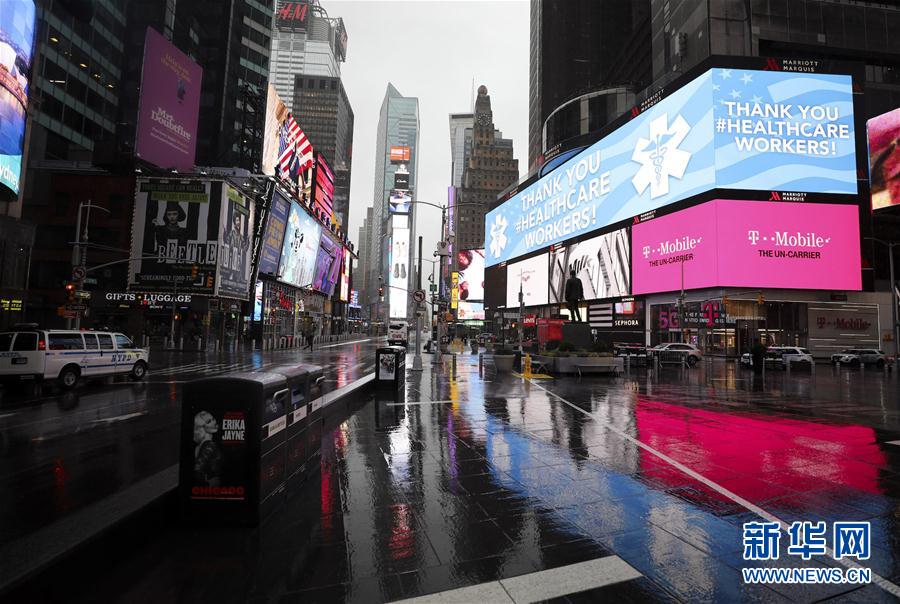 这是3月23日拍摄的空荡荡的纽约时报广场。美国纽约州3月20日发布针对该州居民的“居家令”,以缓解新冠疫情。“居家令”于3月22日晚间生效。 新华社记者王迎摄