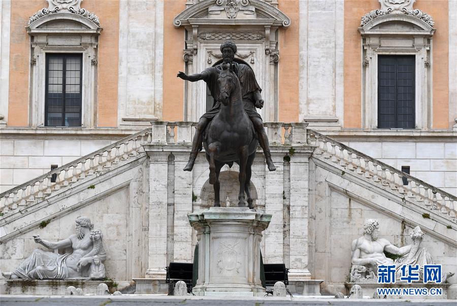 这是4月21日在意大利首都罗马拍摄的古罗马皇帝马可·奥勒留铜像。 相传罗马建城日为公元前753年4月21日,据此,今年的4月21日是罗马第2773个建城日。为防止疫情进一步蔓延,意大利从3月10日起进入全国“封城”状态。 新华社发(阿尔贝托·林格利亚 摄)