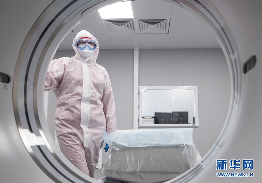 4月23日,医护人员在俄罗斯首都莫斯科市郊新建成的传染病医院内工作。新华社/卫星社