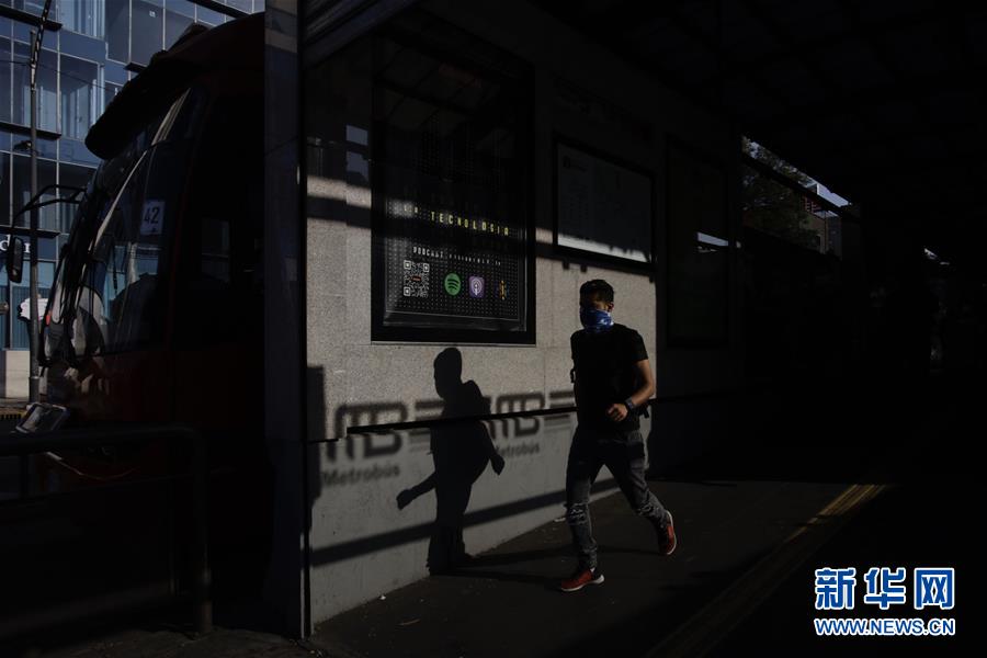 4月23日,在墨西哥首都墨西哥城,一名戴口罩的市民走出一处公交车站。 墨西哥卫生部23日宣布,截至当日墨西哥累计确诊病例达11633例,累计死亡1069例。 新华社发