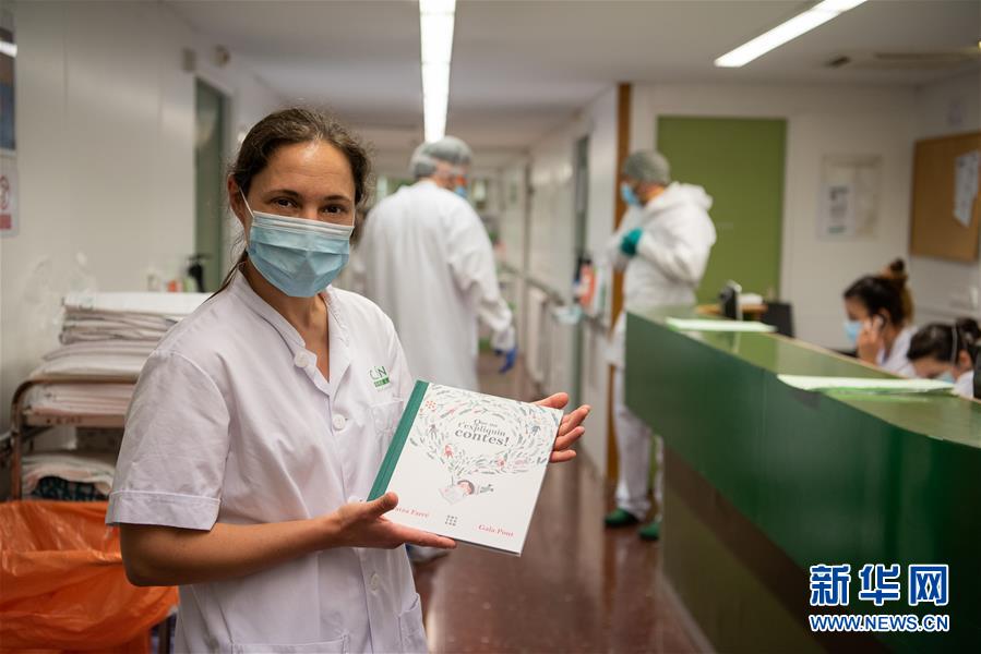 4月23日,在西班牙巴塞罗那医院,一名护士展示收到的“圣乔治节”图书。 23日是世界读书日,同时也是西班牙加泰罗尼亚地区的传统节日“圣乔治节”。根据传统,这一天男人要给自己的妻子或女友送玫瑰花,而女士则回赠一本书。在西班牙巴塞罗医院,医务人员将玫瑰与图书赠送给医院内的患者,与患者共同度过了一个特殊且难忘的“圣乔治节”。 新华社发(弗朗西斯科·阿维亚摄)
