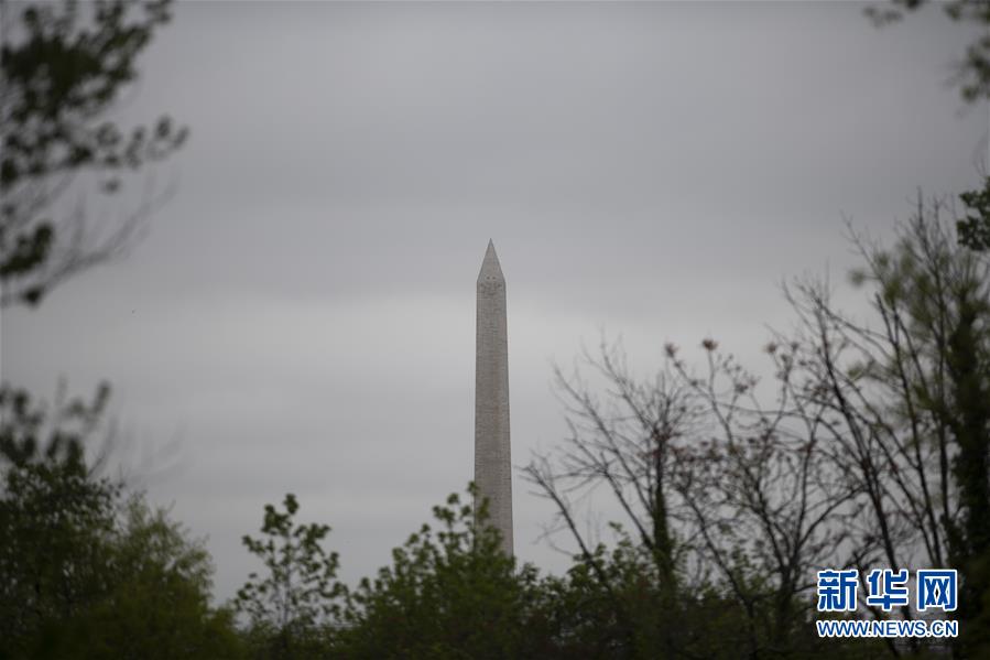 这是4月24日在美国弗吉尼亚州阿灵顿拍摄的华盛顿纪念碑。 新华社记者 刘杰 摄