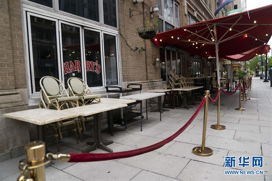 4月24日,在美国首都华盛顿,餐桌和椅子空置在一家餐馆外。新华社记者 刘杰 摄