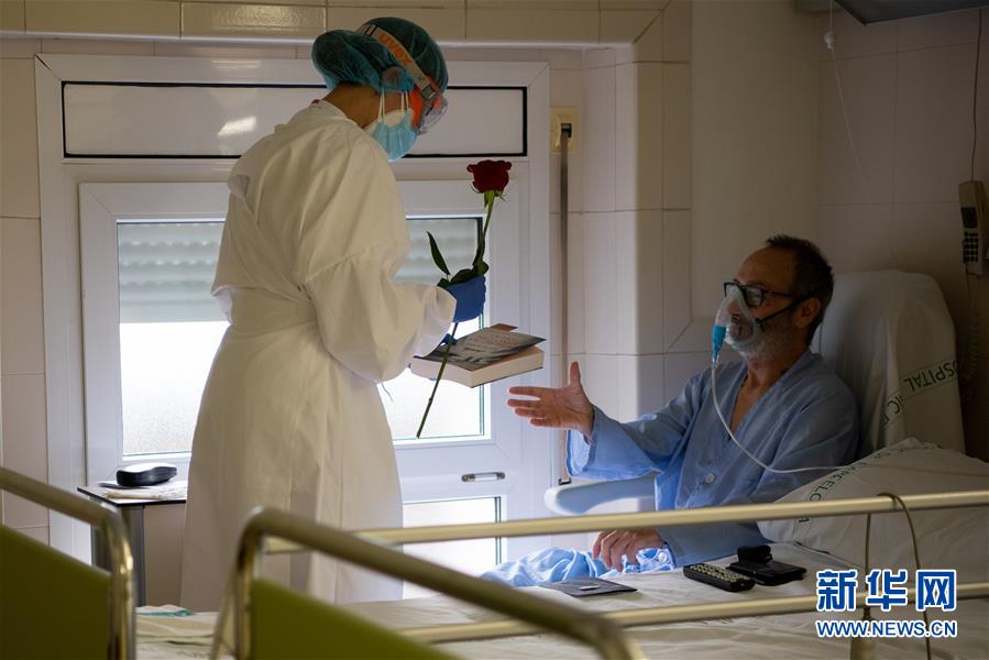 4月23日,在西班牙巴塞罗那,巴尔-德埃夫龙大学医院的医务人员欣赏演出。 当日,一支名为“马诺洛”的乐队来到巴塞罗那的巴尔-德埃夫龙大学医院,用演出向医务人员致敬。为保持安全距离,乐队成员选择在医院楼顶表演。 新华社发(巴尔-德埃夫龙大学医院供图)