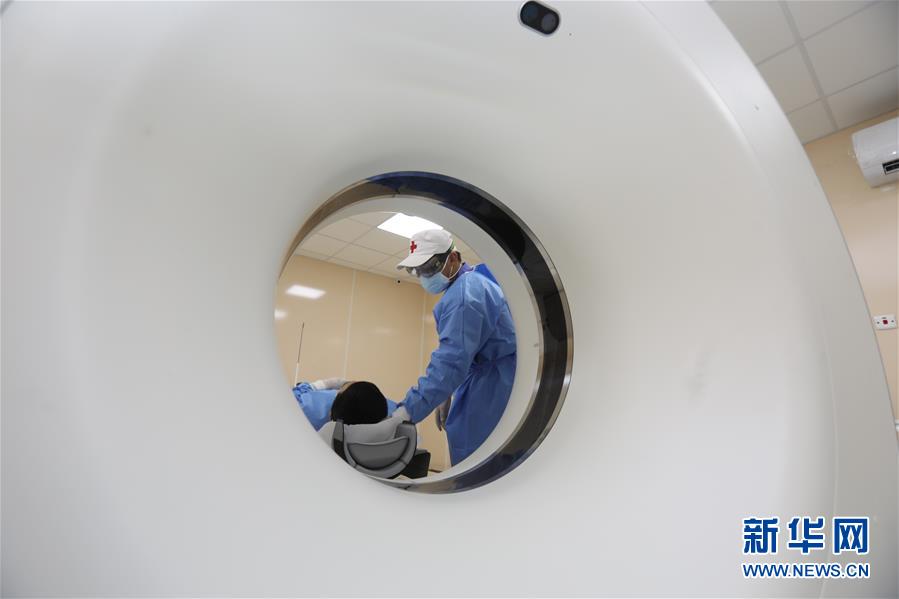 4月25日,在伊拉克巴格达的中国援建伊拉克CT检查室,专家组专家王桉铭进行培训指导。 经过连日来的安装与调试,中国援建伊拉克抗击新冠疫情的专用CT检查室在巴格达新冠肺炎定点收治医院新冠病毒康复中心落成。4月25日,中国红十字会总会援助伊拉克防治新冠肺炎医疗专家组向伊方正式移交了CT设备验收证书,并为伊拉克放射科医生提供设备应用培训。 新华社发