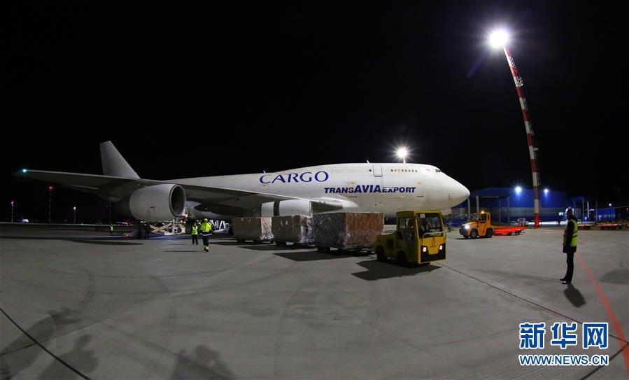 4月26日凌晨,载有中方捐赠的新一批抗疫物资的货机抵达白俄罗斯首都明斯克国际机场。 一架白俄罗斯货机26日凌晨降落在白首都明斯克国际机场,机上载有中方捐赠的新一批抗疫物资。 新华社发(任科夫摄)