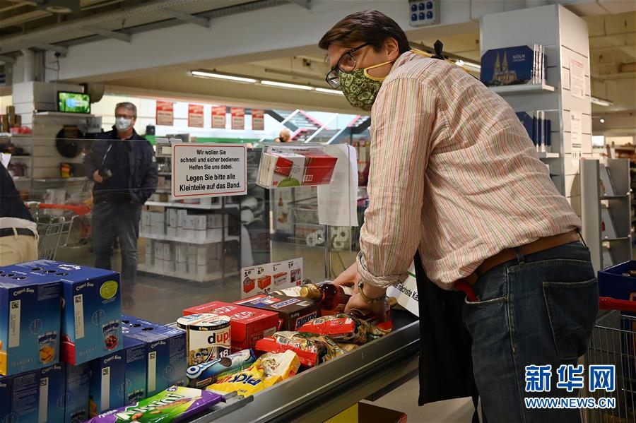 4月28日,在德国科隆一家超市内,顾客戴口罩购物。 据德国疾控机构罗伯特·科赫研究所28日公布的新冠疫情最新数据,截至当地时间28日零时,德国新增确诊病例1144例,累计确诊156337例。这家研究所27日的报告显示,德国新冠疫情基本传染数回升至1.0,即每个确诊患者平均传染一个人。德国新冠疫情人际传播的基本传染数3月初为3.0,4月17日下降为0.7,过去几日保持在0.9。罗伯特·科赫研究所所长威勒此前表示,德国的目标是将基本传染数永久控制在1以内。基本传染数小于1表示传染病将会逐渐消失。 新华社发(乌尔里希·胡夫纳格尔 摄)