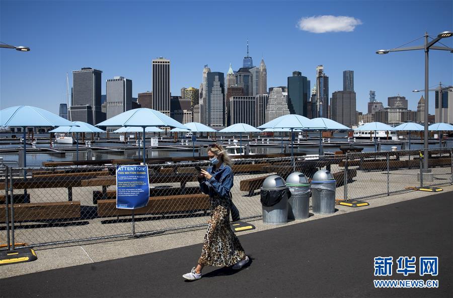 4月28日,在美国纽约,一名女子戴口罩出行。 美国约翰斯·霍普金斯大学28日发布的新冠疫情最新统计数据显示,美国累计新冠确诊病例超过100万例。 新华社发(郭克 摄)