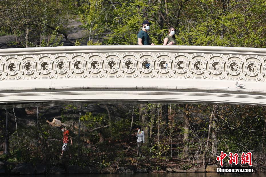 当地时间4月28日,新冠肺炎疫情下的纽约中央公园,桥上桥下的民众都戴着口罩。据美国约翰斯·霍普金斯大学发布统计数据,截至28日傍晚,美国累计新冠肺炎确诊病例已经超过101万例。中新社记者 廖攀 摄