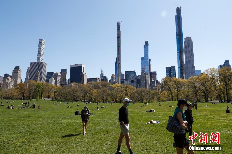 当地时间4月28日,新冠肺炎疫情下的纽约中央公园,有人在草坪上散步。据美国约翰斯·霍普金斯大学发布统计数据,截至28日傍晚,美国累计新冠肺炎确诊病例已经超过101万例。中新社记者 廖攀 摄