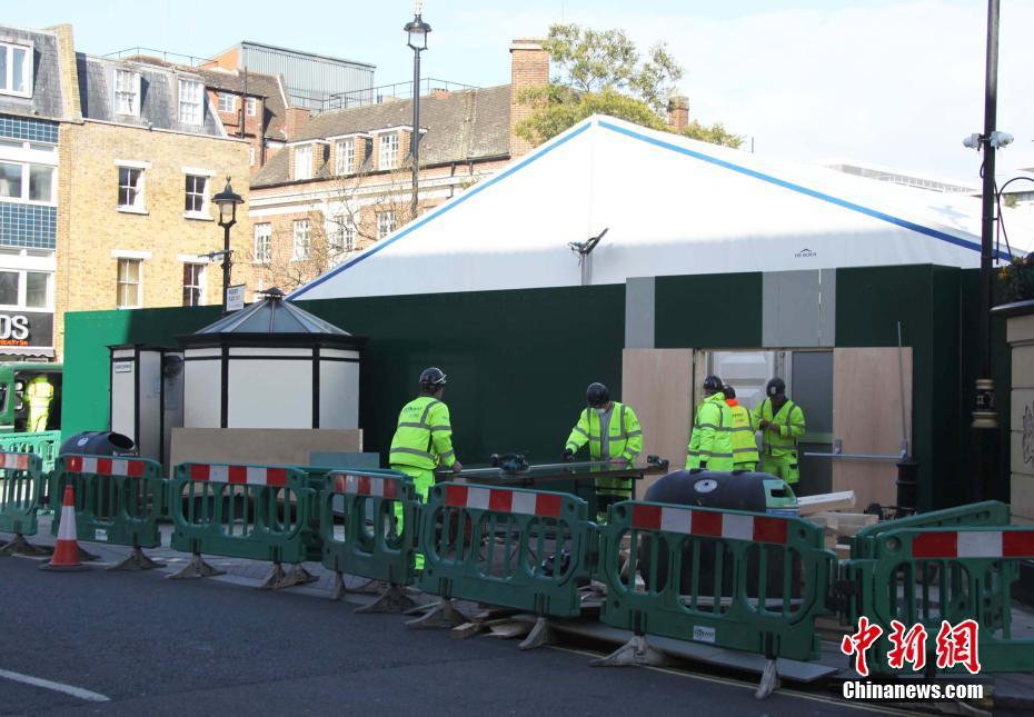 4月29日,新冠病毒死亡人数达26097人的英国,全球排名位居第五。“疫情高峰期”下,持续实行“社会疏离”措施的“禁足令”,使伦敦市民日常生活发生了根本性改变。图为为应对超乎寻常的死亡人数,伦敦一街区中搭建起了临时停尸间。中新社记者 张平 摄