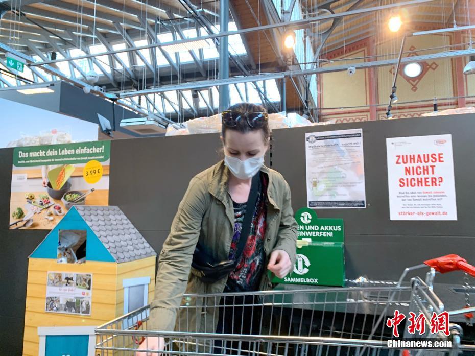 4月29日,德国柏林市政府开始将该市“口罩强制令”的范围从此前仅限于公共交通工具扩大至包含超市和各类零售商店。柏林是德国16个州中最后一个实施“购物和出行均必须佩戴”的州。图为当天下午,柏林市中心的REWE超市一名戴口罩的顾客。中新社记者 彭大伟 摄