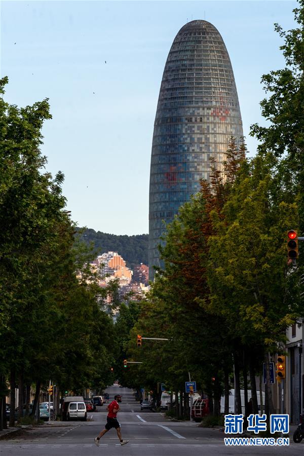 5月2日,一名市民在西班牙巴塞罗那市区跑步。 根据西卫生部4月30日宣布的一项新规定,从5月2日起,全国“禁足令”将进一步放松,民众可每天短暂走出家门进行体育锻炼等活动,出门时段根据年龄段划分。 新华社发(胡安·戈萨摄)