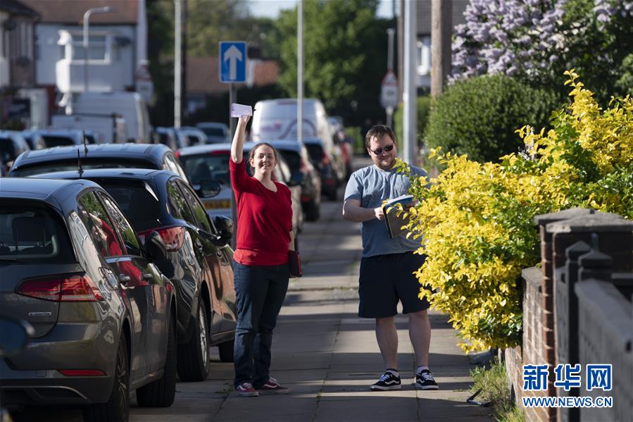 5月2日,在英国利物浦,居民们在玩游戏。 当日,英国利物浦一条大街上的居民进行了一场街头游戏,在特殊时期鼓励大家积极乐观抗疫。组织者给每家每户发放游戏卡片,居民们在自家院里填写,最后由组织者公布结果,确定获胜者。 新华社发(乔恩·休珀摄)