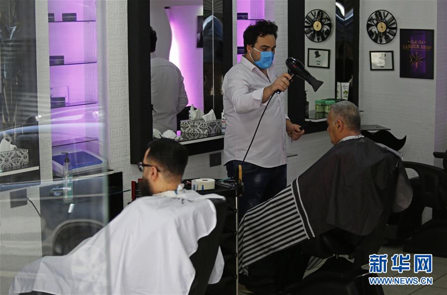 5月4日,位于黎巴嫩首都贝鲁特的一家理发店开门营业。 新华社发(比拉尔·贾维希摄)