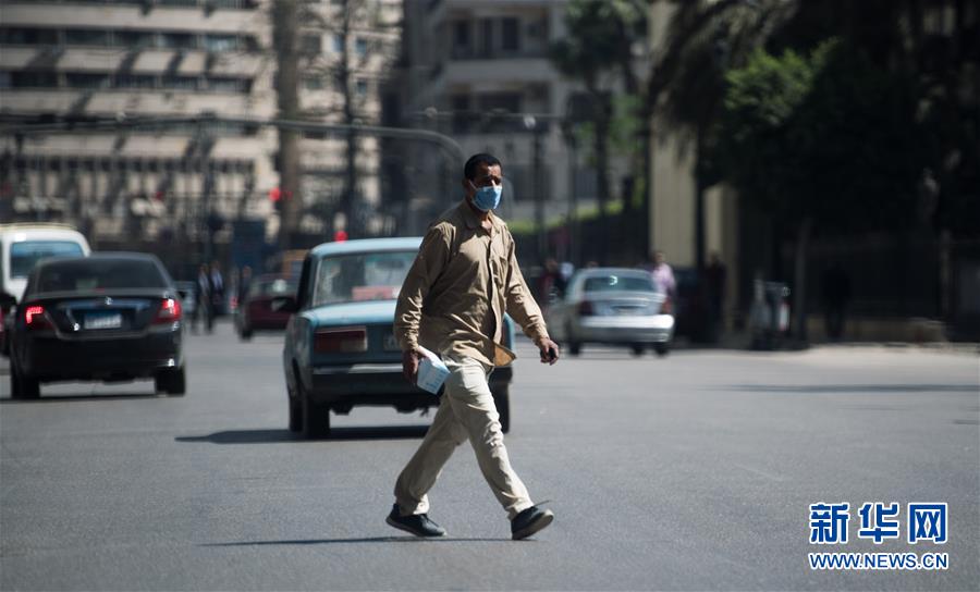 5月4日,在埃及首都开罗,一名男子戴口罩出行。 埃及卫生部4日晚说,埃及境内新增新冠确诊病例348例,累计确诊6813例;新增死亡病例7例,累计死亡436例。 新华社记者邬惠我摄
