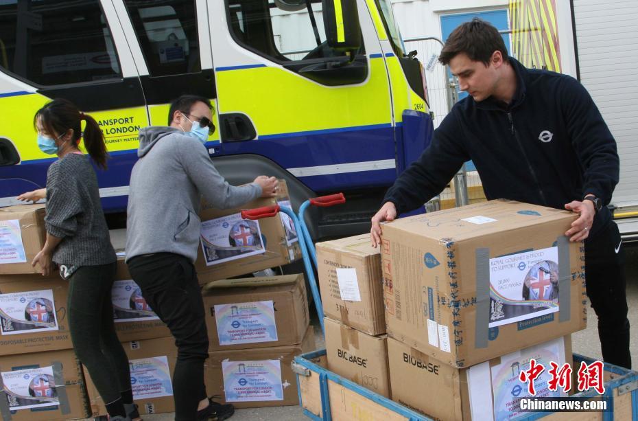 5月4日,英国华人社团4日捐赠4万个防护口罩,援助伦敦交通局新冠病毒疫情的防护工作。中新社记者 张平 摄
