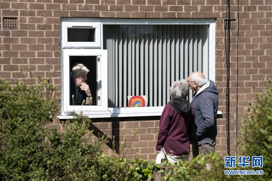 5月5日,在英国曼彻斯特,人们保持社交距离交谈。 英国卫生部5日公布的新冠疫情数字显示,死亡病例数与前一天相比增加693例,达到29427例。 新华社发(乔恩·休珀摄)
