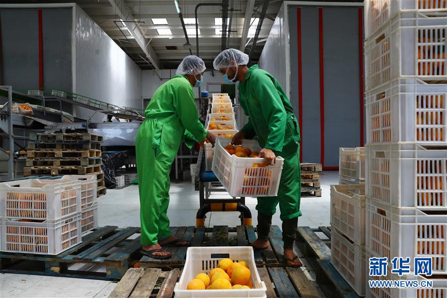 5月2日,在埃及布海拉省,工人在橙子包装车间内工作。新华社发(艾哈迈德·戈马摄)