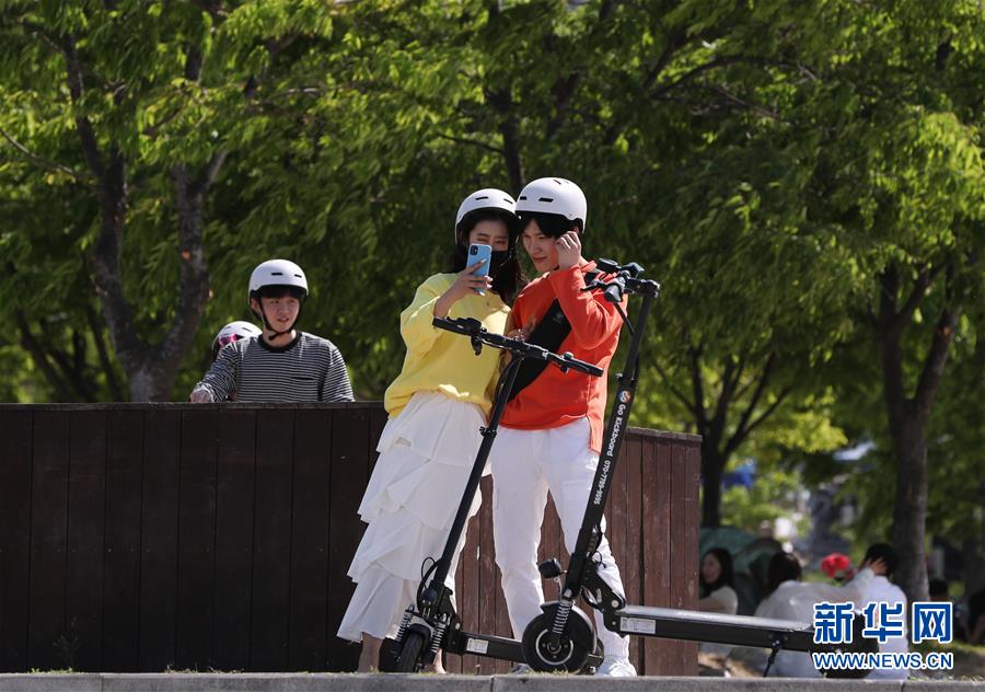 5月6日,人们在韩国首尔汝矣岛汉江公园休闲。 韩国鉴于国内疫情形势趋稳,从6日起进入日常生活和防疫工作并行的“生活防疫阶段”,个人基本防疫守则包括勤洗手、周期性消毒和通风换气、人与人之间保持距离、身体不适应居家观察等。 新华社记者 王婧嫱 摄