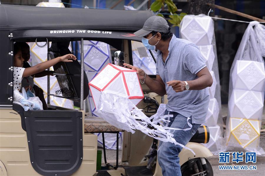 5月6日,在斯里兰卡科伦坡,商贩在售卖灯笼。 新华社发 (加延·萨米拉)