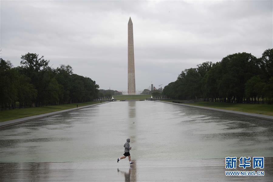 5月6日,在美国首都华盛顿,一名男子在华盛顿纪念碑附近跑步健身。 美国自动数据处理公司(ADP)6日公布的数据显示,由于新冠疫情冲击美国经济和企业,4月美国私营部门大幅削减约2023.6万个就业岗位。 新华社记者 刘杰 摄