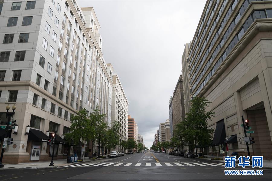 这是5月6日在美国首都华盛顿拍摄的空旷的街道。 美国自动数据处理公司(ADP)6日公布的数据显示,由于新冠疫情冲击美国经济和企业,4月美国私营部门大幅削减约2023.6万个就业岗位。 新华社记者 刘杰 摄
