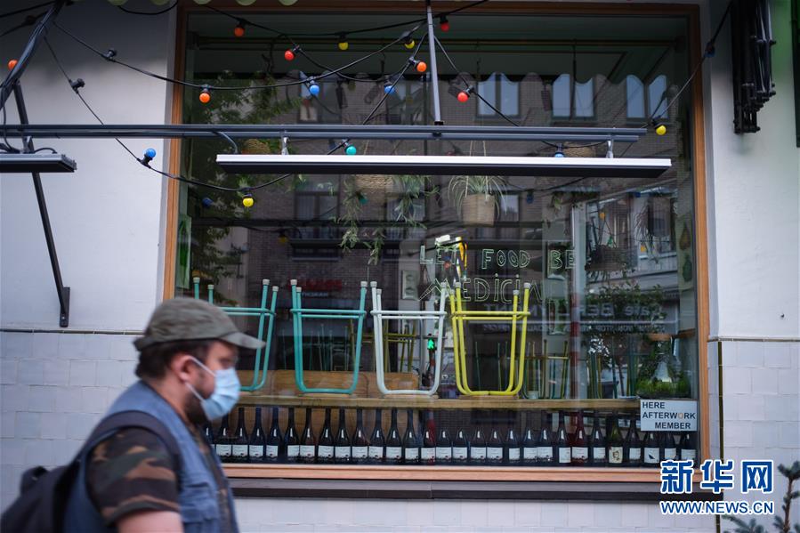 欧盟委员会5月6日预测,受新冠疫情影响,2020年欧洲经济将出现“历史性衰退”,欧盟经济将萎缩7.5%,欧元区经济将萎缩7.75%。 这是4月17日,在比利时布鲁塞尔,一名戴口罩的男子经过一家关闭的餐馆。 新华社记者 张铖 摄