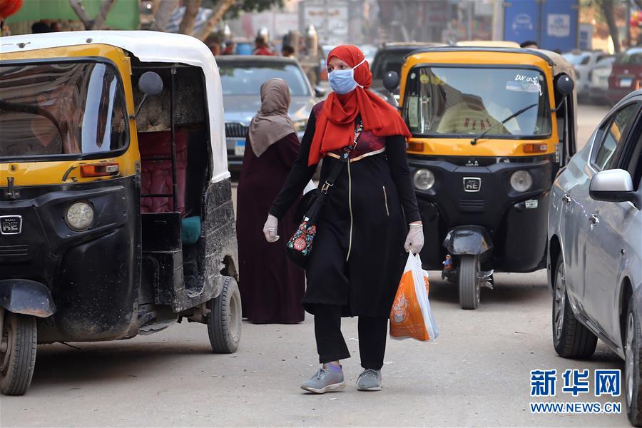 5月7日,在埃及首都开罗,一名女子戴口罩出行。 新华社发(艾哈迈德·戈马摄)