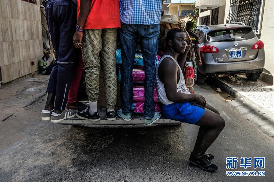 5月7日,在塞内加尔首都达喀尔,志愿者搭乘小卡车准备给困难家庭分发食物。 当地时间7日下午,塞内加尔一些爱心人士在政府的帮助下开始在首都达喀尔分发大米、黄油、甜枣等食物,让已经斋戒一天的困难家庭可以在日落后准备晚餐。 新华社发(埃迪·彼得斯摄)