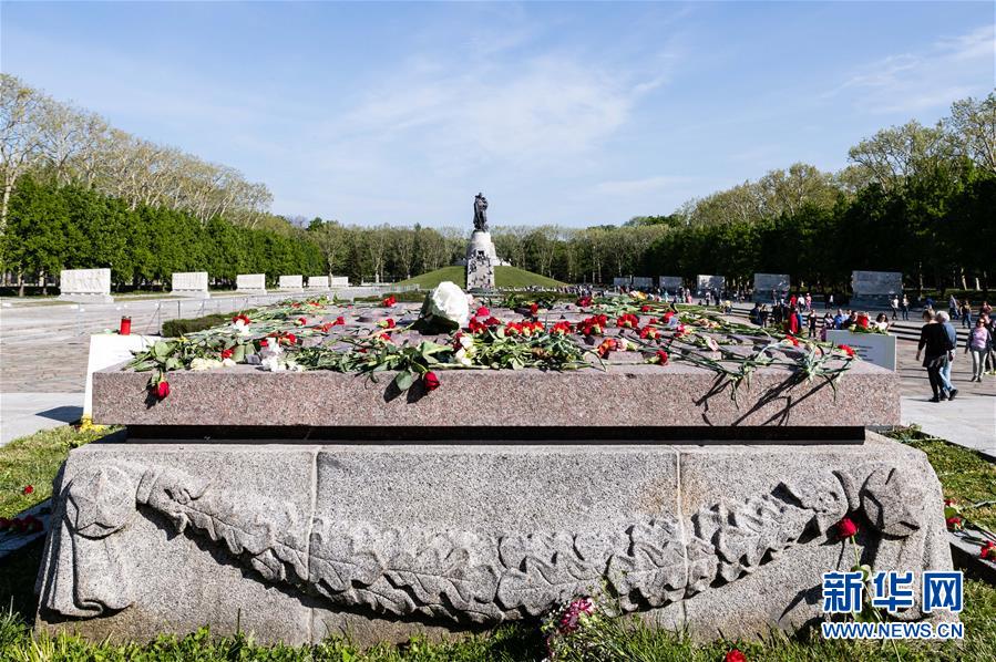 这是5月8日在德国首都柏林拍摄的特雷普托苏军烈士陵园一角。 当日,许多德国柏林民众自发前往相关场所纪念第二次世界大战“欧洲胜利日”75周年。 新华社发(张平摄)