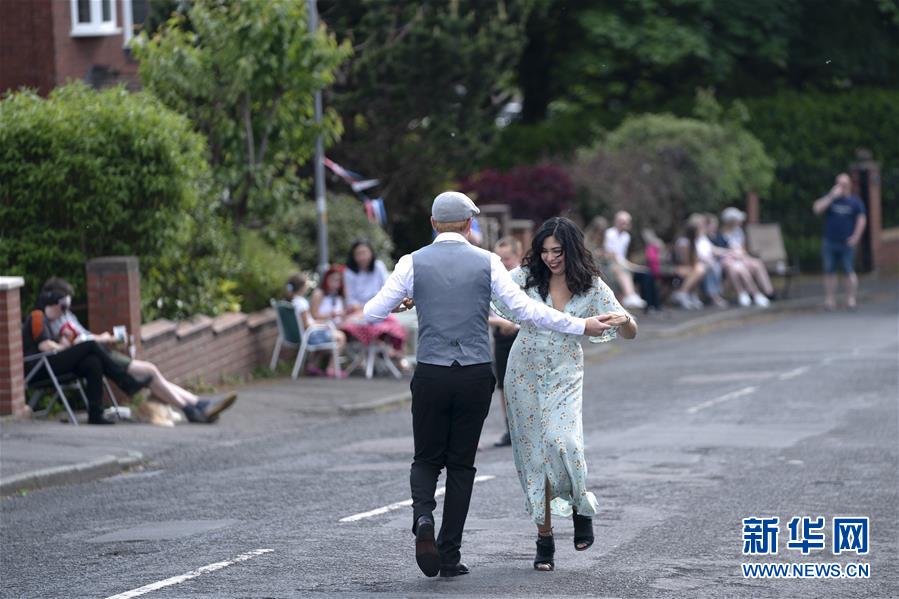 5月8日,在英国曼彻斯特,当地居民身穿20世纪40年代复古服装参加街头纪念活动。 当日是第二次世界大战“欧洲胜利日”,英国举行活动纪念第二次世界大战欧洲战场胜利75周年,悼念在战争中牺牲的战士和罹难民众。 新华社发(乔恩·休珀摄)