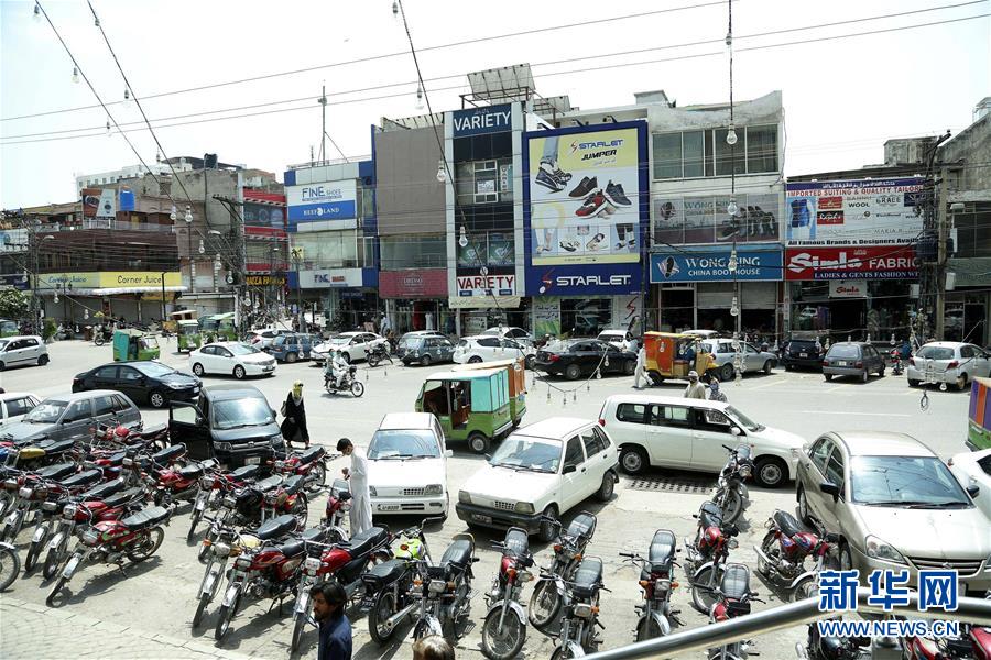 这是5月9日在巴基斯坦拉瓦尔品第拍摄的一条商业街。 新华社发(艾哈迈德·卡迈勒摄)
