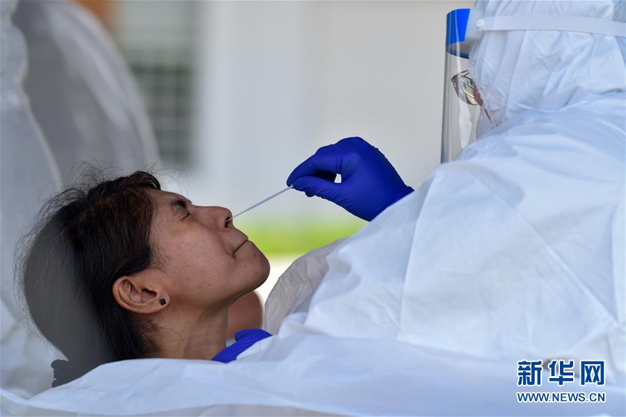 5月10日,居民在马来西亚雪兰莪州一处因新冠疫情而封锁的小区内接受病毒检测。新华社发(张纹综摄)