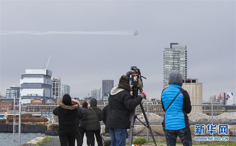 5月10日,加拿大空军“雪鸟”飞行表演队从多伦多上空飞过。 加拿大空军“雪鸟”飞行表演队从5月初开始,自加拿大东部向西部依次展开名为“鼓舞行动”的编队飞行活动,向抗击新冠疫情的加拿大人致敬。 新华社发(邹峥摄)
