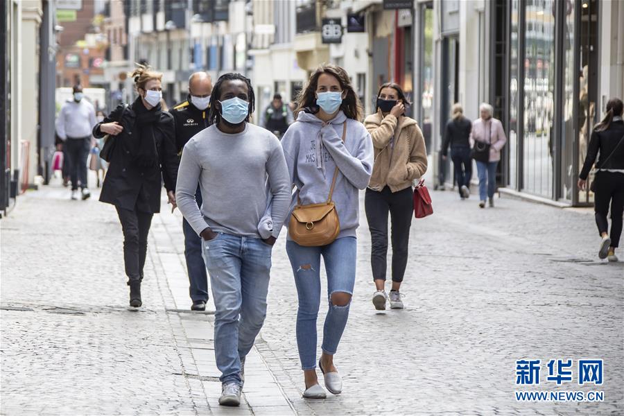 5月11日,在法国北部城市里尔,人们戴着口罩走在街上。 根据法国政府的解禁计划,自5月11日起,法国开始逐步解封。 新华社发(塞巴斯蒂安·库尔吉 摄)
