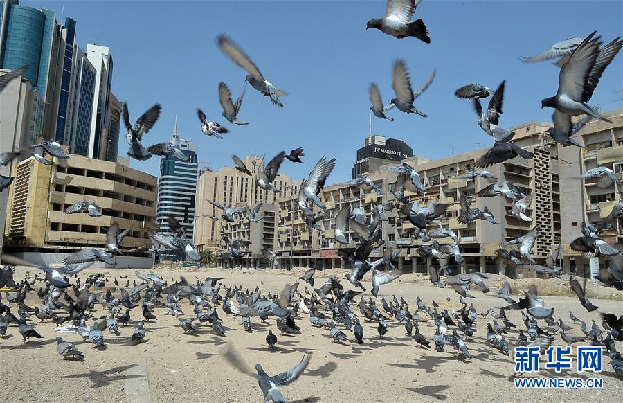 5月11日,在科威特首都科威特城,鸽子在空旷的广场上聚集。新华社发(阿萨德摄)