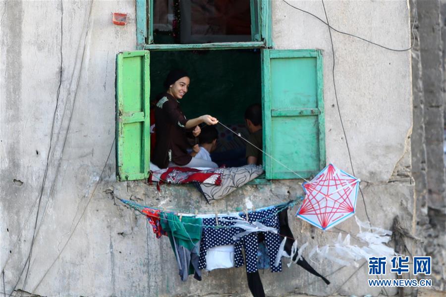 5月11日,在埃及首都开罗,一名女子在窗口放风筝。受新冠疫情影响,不少埃及民众选择在自家窗口或住宅楼顶放风筝。 埃及卫生部11日晚说,埃及境内新增新冠确诊病例346例,累计确诊9746例;新增死亡病例8例,累计死亡533例。 新华社发(艾哈迈德·戈马摄)
