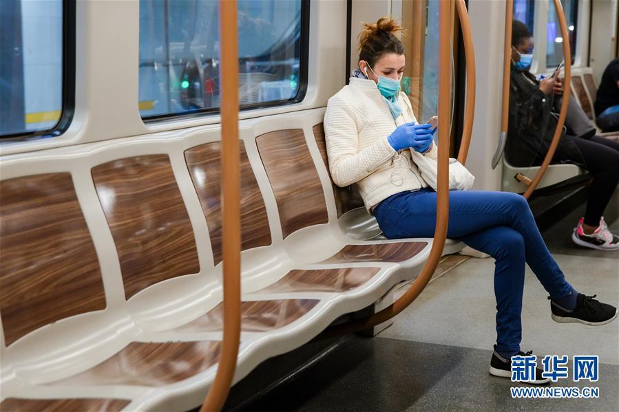 5月11日,在比利时布鲁塞尔,一名戴口罩的女子搭乘地铁。 比利时“解禁”从11日开始进入新阶段,商店重新营业,餐馆、咖啡馆等除外。商店必须遵守相关措施,包括按10平方米营业面积一名顾客的标准进行限流、每名顾客最长停留30分钟、遵守安全距离以及强烈建议对口鼻进行遮盖等。 新华社记者张铖摄