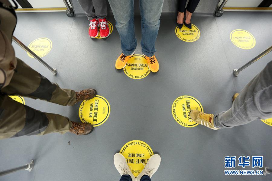 5月11日,在克罗地亚萨格勒布的机场,人们在摆渡车上保持距离。 近日,克罗地亚逐步解除为防范新冠疫情所采取的限制措施。 新华社发(埃米察摄)