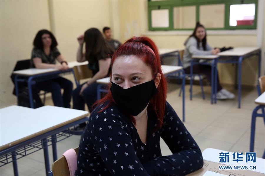 5月11日,希腊雅典一所学校的学生坐在教室内。 当天,希腊学校按政府计划开始逐步恢复教学。 新华社发