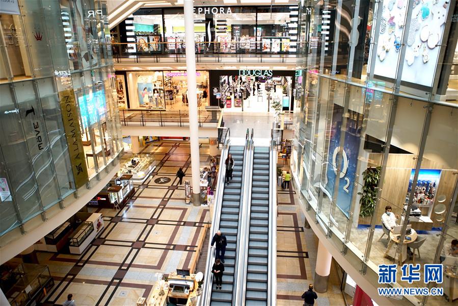 5月11日,顾客在捷克首都布拉格一家重新开业的购物中心内逛街。 5月11日起,捷克放松部分应对新冠疫情的管控措施,大型购物中心内的商店、理发店、提供室外服务的餐馆及博物馆等商业文化设施重新开放营业。 新华社发(达娜·科什奈洛娃摄)