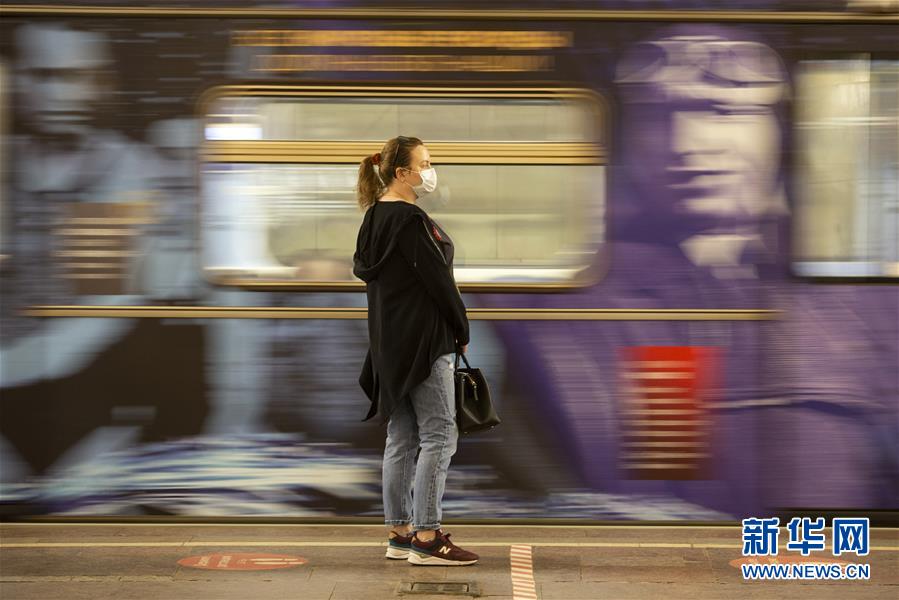 5月12日,在俄罗斯首都莫斯科,一位女子佩戴口罩等地铁。 据俄罗斯防疫指挥部12日消息,过去24小时俄新增新冠确诊病例10899例,累计确诊232243例。 新华社发(亚历山大 摄)