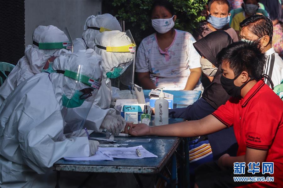 5月13日,在印度尼西亚泗水,医务工作者为人们进行新冠病毒检测。 印度尼西亚卫生部13日发布的新冠疫情数据显示,该国确诊病例比前一天增加689例,是印尼疫情暴发以来单日新增最高水平。该国目前累计确诊15438例,累计死亡1028例,累计治愈3287例。 新华社发(苏里亚·贝莎摄)