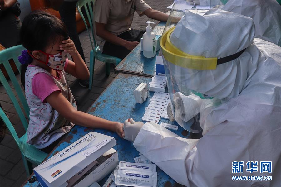 5月13日,在印度尼西亚泗水,医务工作者为一名小女孩进行新冠病毒检测。 印度尼西亚卫生部13日发布的新冠疫情数据显示,该国确诊病例比前一天增加689例,是印尼疫情暴发以来单日新增最高水平。该国目前累计确诊15438例,累计死亡1028例,累计治愈3287例。 新华社发(苏里亚·贝莎摄)