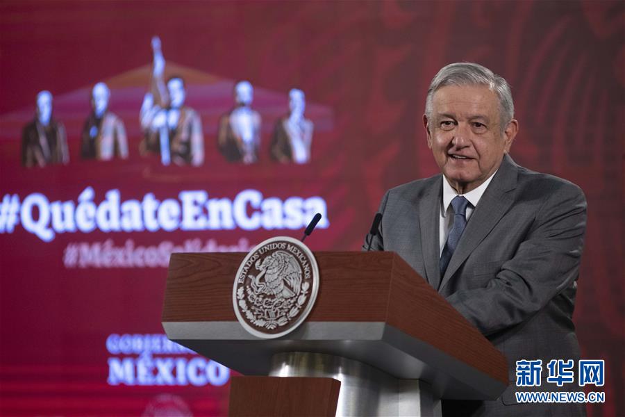 5月13日,在墨西哥首都墨西哥城,墨西哥总统洛佩斯出席新闻发布会。 当日,墨西哥政府宣布将从5月18日起在全国范围内开始解禁,以重振经济。 新华社发