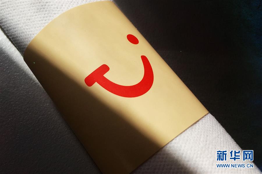 这是2018年9月20日在途易航空的航班上拍摄的途易集团的标识。 受新冠疫情冲击,旅游公司面临财务压力。欧洲最大旅游公司途易集团13日宣布准备裁员8000人以控制运营成本。 途易集团总部位于德国,拥有旅行社、酒店、航空、邮轮等服务。 新华社记者 郑焕松 摄